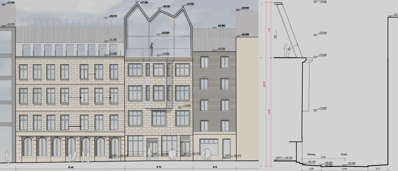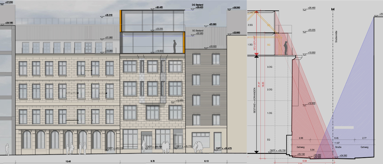 Hierbei liegt unser Fokus auf der Entwicklung funktioneller Raumprogramme, die die vorhandenen Bausubstanzen räumlich aufwerten und zugleich eine optimale wirtschaftliche Nutzung im Sinne des Auftraggebers gewährleisten.