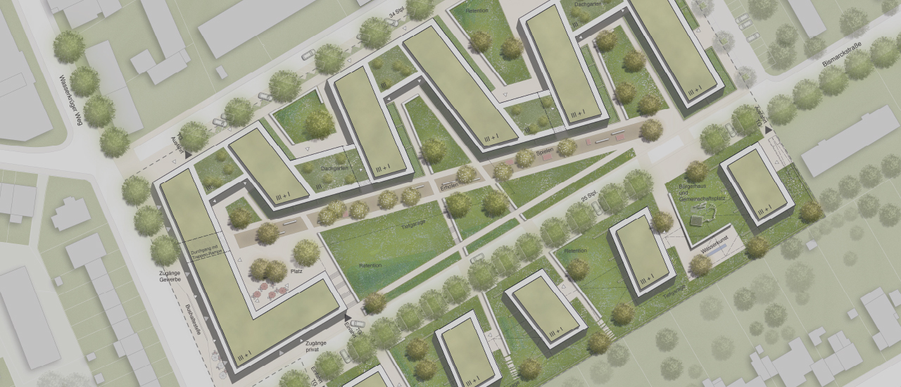 Unsere Schwerpunkte liegen hierbei unter anderem auf Konzeptplanungen, Entwicklung komplexer Bebauungskonzepte